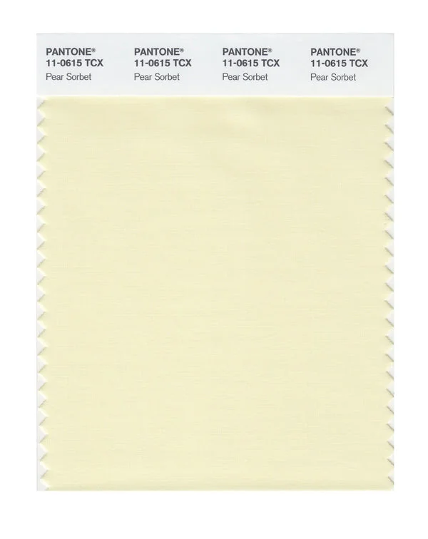 Pear Sorbet is a light and airy color from the Pantone TCX collection, identified by the code 11-0615 TCX. This warm tone with its balanced character makes it an excellent choice for gentle optimism, baby products, and soft branding.