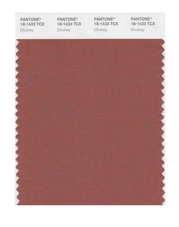 Chutney is a medium-toned color from the Pantone TCX collection, identified by the code 18-1433 TCX. This warm tone with its balanced character makes it an excellent choice for luxury fashion, dramatic interiors, and premium branding.
