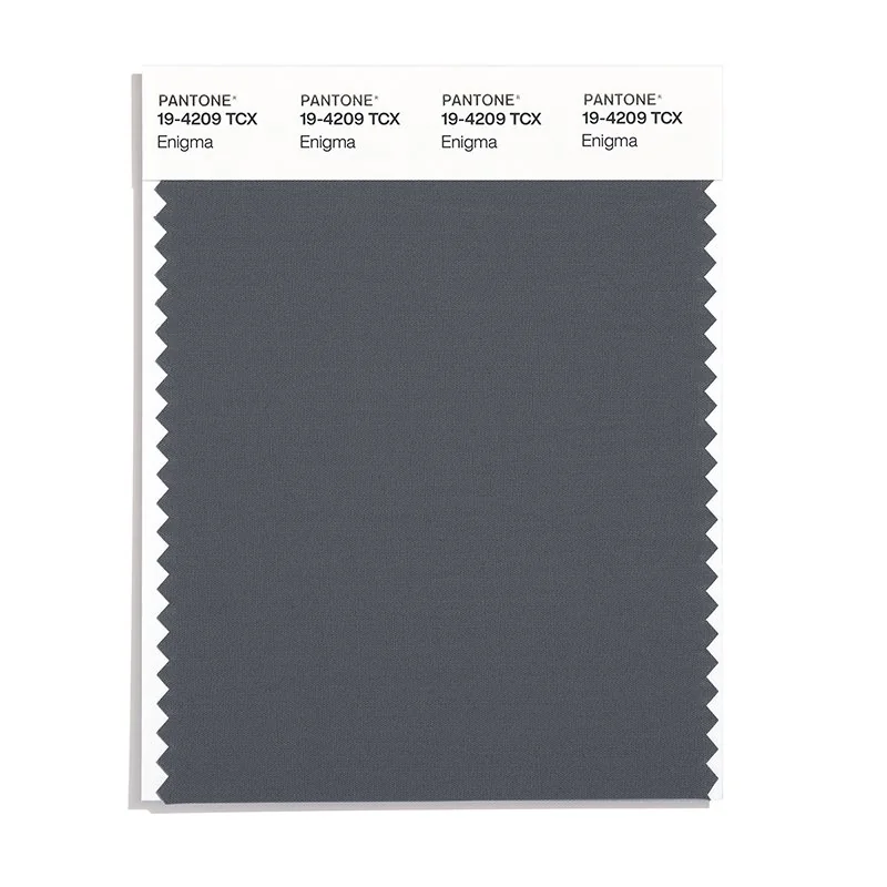 Enigma is a medium-toned color from the Pantone TCX collection, identified by the code 19-4209 TCX. This cool tone with its balanced character makes it an excellent choice for premium branding, luxury services, and sophisticated design.