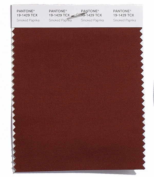 Smoked Paprika is a medium-toned brown from the Pantone TCX collection, identified by the code 19-1429 TCX. This warm tone with its balanced character makes it an excellent choice for natural products, rustic design, and earthy branding.