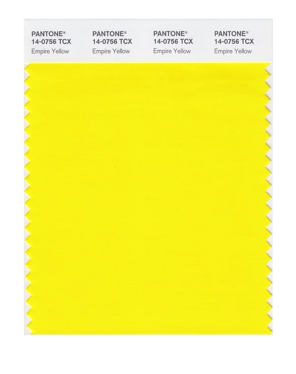 Empire Yellow is a medium-toned color from the Pantone TCX collection, identified by the code 14-0756 TCX. This warm tone with its vibrant and bold character makes it an excellent choice for natural products, military themes, and earthy design.