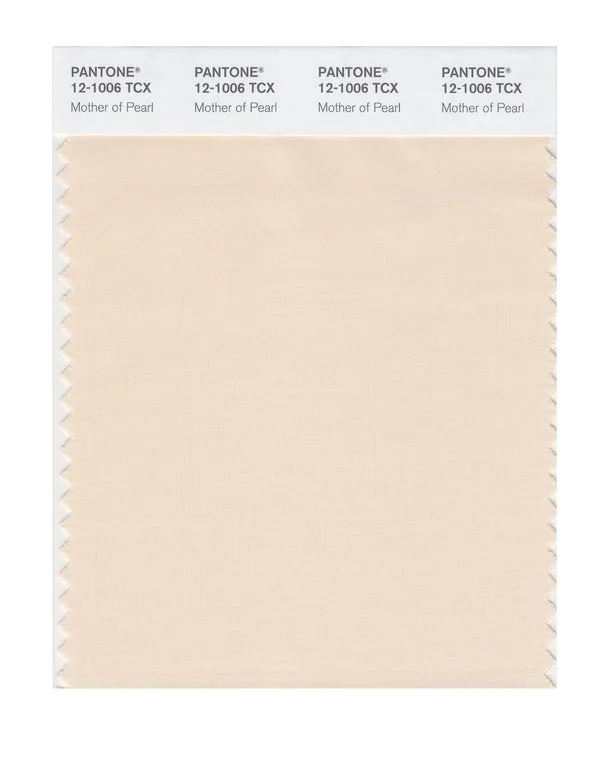 Mother Of Pearl is a light and airy color from the Pantone TCX collection, identified by the code 12-1006 TCX. This warm tone with its soft and pastel character makes it an excellent choice for soft femininity, wellness branding, and gentle aesthetics.