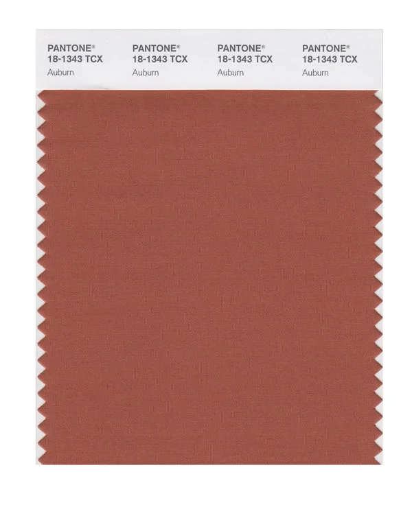 Auburn is a medium-toned color from the Pantone TCX collection, identified by the code 18-1343 TCX. This warm tone with its balanced character makes it an excellent choice for luxury fashion, dramatic interiors, and premium branding.