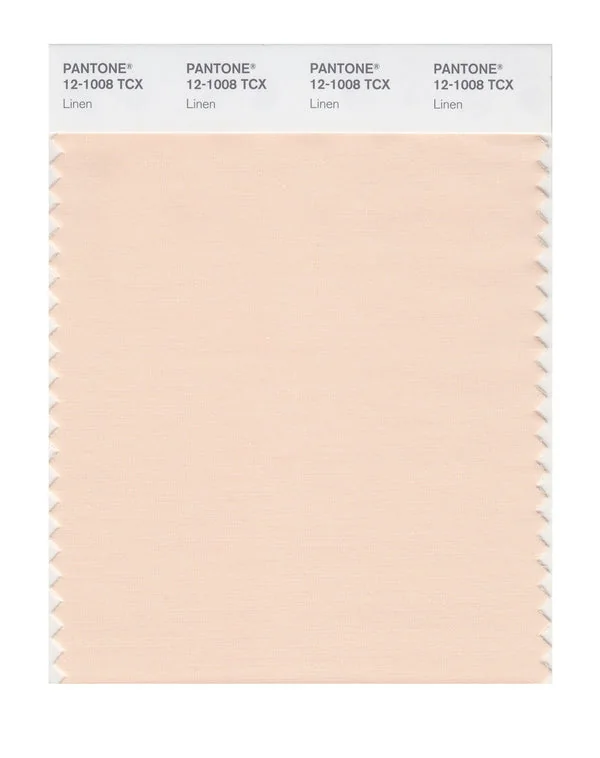 Linen is a light and airy color from the Pantone TCX collection, identified by the code 12-1008 TCX. This warm tone with its balanced character makes it an excellent choice for soft femininity, wellness branding, and gentle aesthetics.