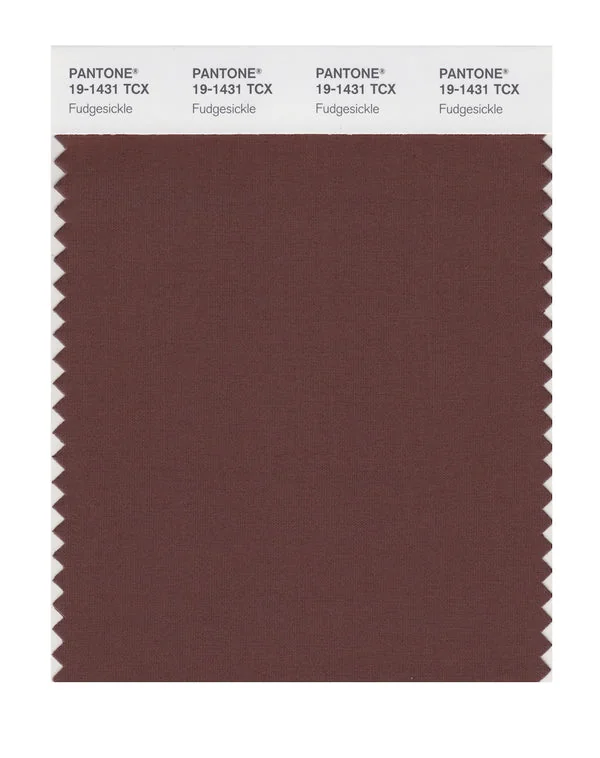 Fudgesickle is a medium-toned brown from the Pantone TCX collection, identified by the code 19-1431 TCX. This warm tone with its balanced character makes it an excellent choice for natural products, rustic design, and earthy branding.
