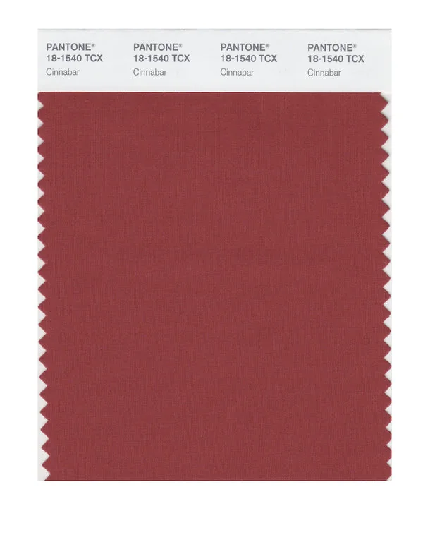 Cinnabar is a medium-toned color from the Pantone TCX collection, identified by the code 18-1540 TCX. This warm tone with its balanced character makes it an excellent choice for luxury fashion, dramatic interiors, and premium branding.