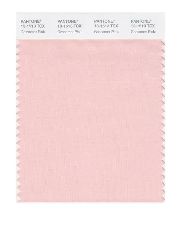 Gossamer Pink is a light and airy color from the Pantone TCX collection, identified by the code 13-1513 TCX. This warm tone with its vibrant and bold character makes it an excellent choice for baby products, gentle care, and soft branding.
