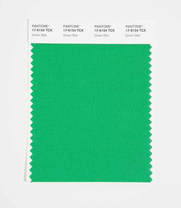 Green Bee is a deep and rich color from the Pantone TCX collection, identified by the code 17-6154 TCX. This cool tone with its vibrant and bold character makes it an excellent choice for wellness branding, spa environments, and serene design.