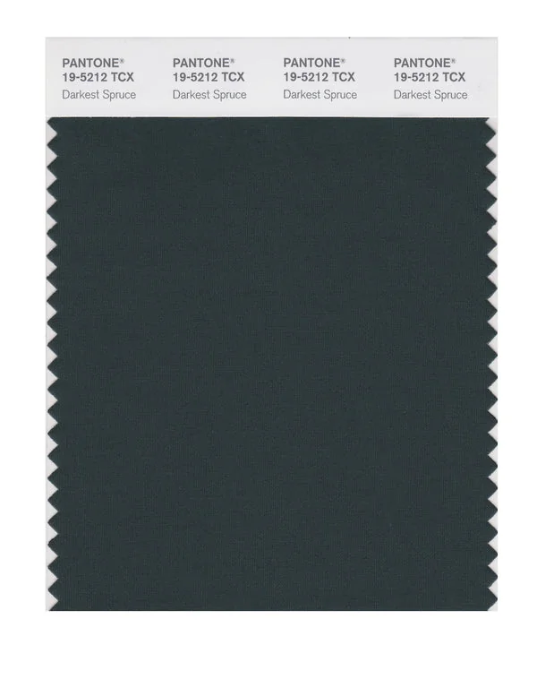 Darkest Spruce is a deep and rich color from the Pantone TCX collection, identified by the code 19-5212 TCX. This cool tone with its balanced character makes it an excellent choice for sophisticated branding, medical products, and calming design.