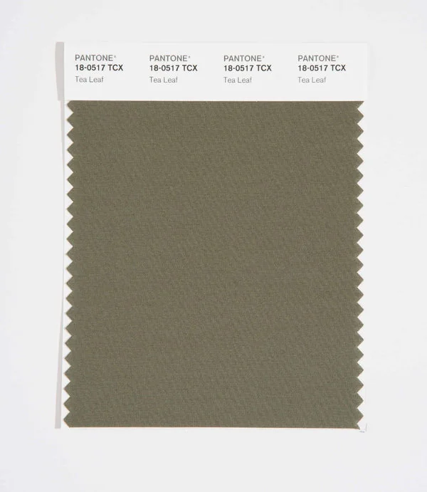 Tea Leaf is a medium-toned color from the Pantone TCX collection, identified by the code 18-0517 TCX. This warm tone with its balanced character makes it an excellent choice for natural products, military themes, and earthy design.