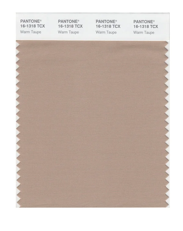 Warm Taupe is a medium-toned color from the Pantone TCX collection, identified by the code 16-1318 TCX. This warm tone with its balanced character makes it an excellent choice for soft femininity, wellness branding, and gentle aesthetics.