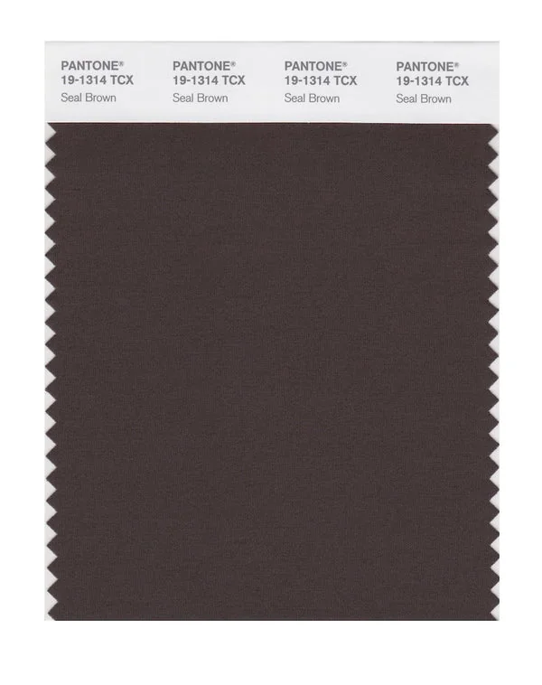 Seal Brown is a deep and rich brown from the Pantone TCX collection, identified by the code 19-1314 TCX. This warm tone with its balanced character makes it an excellent choice for natural products, rustic design, and earthy branding.
