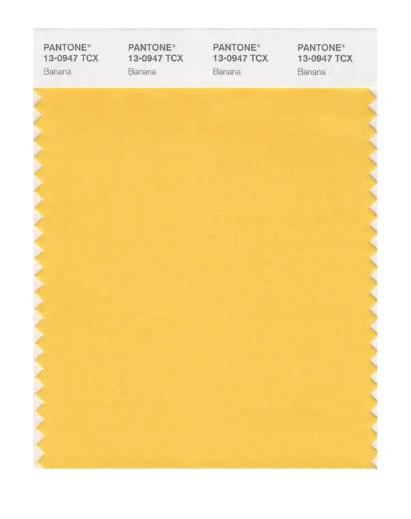 Banana is a medium-toned color from the Pantone TCX collection, identified by the code 13-0947 TCX. This warm tone with its vibrant and bold character makes it an excellent choice for luxury branding, premium products, and elegant accents.