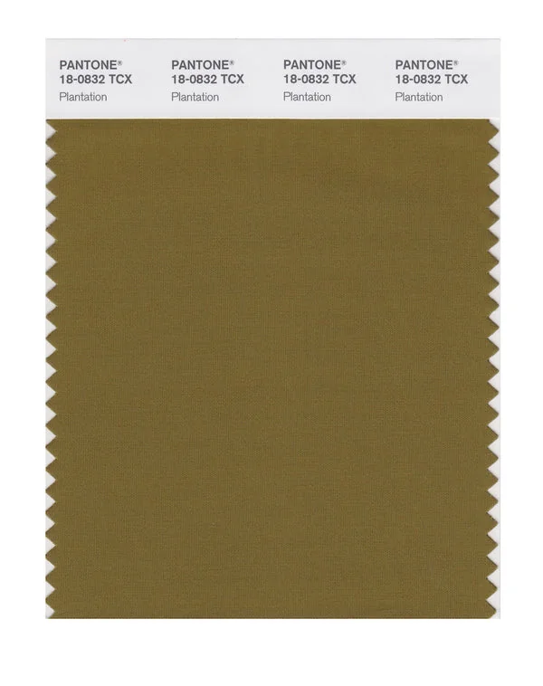 Plantation is a medium-toned color from the Pantone TCX collection, identified by the code 18-0832 TCX. This warm tone with its balanced character makes it an excellent choice for warm luxury, artisanal products, and natural branding.