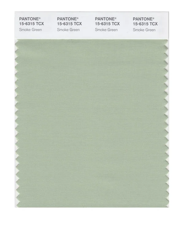 Smoke Green is a medium-toned green from the Pantone TCX collection, identified by the code 15-6315 TCX. This cool tone with its balanced character makes it an excellent choice for sustainability, nature brands, and eco-friendly design.