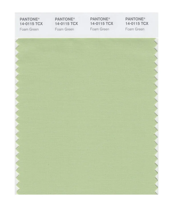 Foam Green is a medium-toned color from the Pantone TCX collection, identified by the code 14-0115 TCX. This cool tone with its balanced character makes it an excellent choice for energetic branding, youth products, and vibrant design.