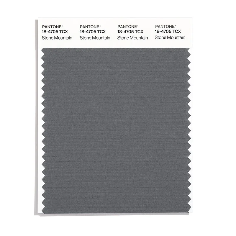 Stone Mountain is a medium-toned color from the Pantone TCX collection, identified by the code 18-4705 TCX. This cool tone with its balanced character makes it an excellent choice for sophisticated neutrals, urban design, and modern aesthetics.