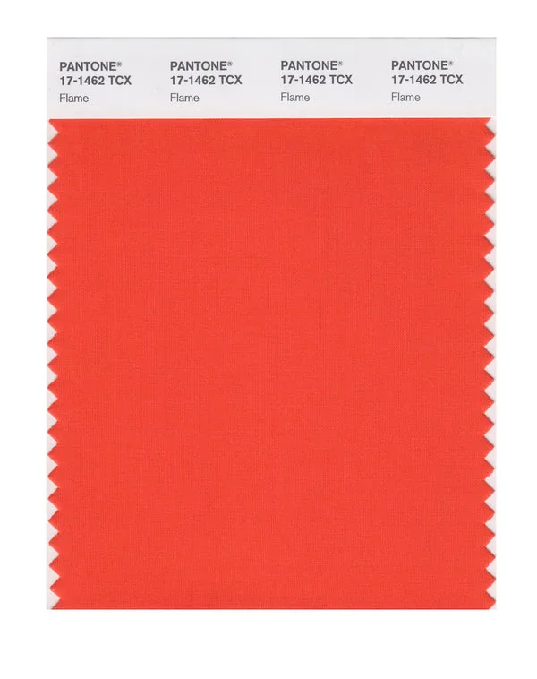 Flame is a medium-toned color from the Pantone TCX collection, identified by the code 17-1462 TCX. This warm tone with its vibrant and bold character makes it an excellent choice for luxury fashion, dramatic interiors, and premium branding.