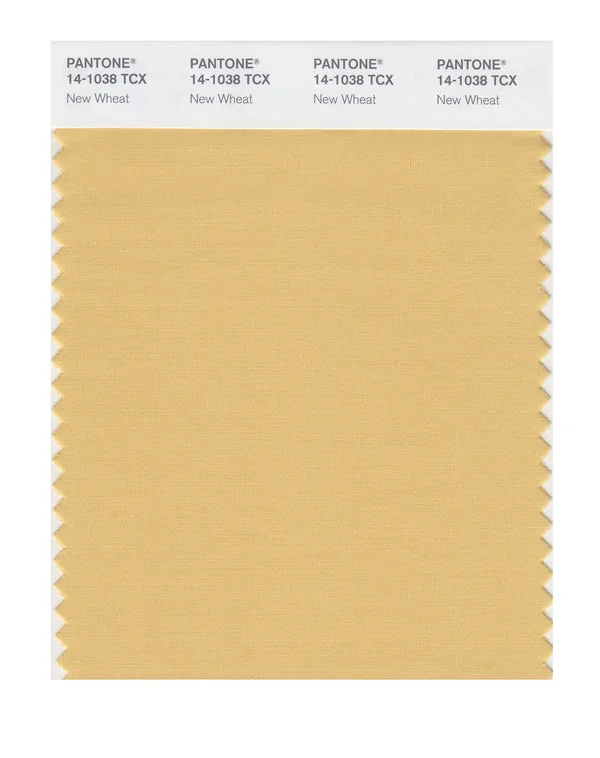 New Wheat is a medium-toned color from the Pantone TCX collection, identified by the code 14-1038 TCX. This warm tone with its balanced character makes it an excellent choice for luxury branding, premium products, and elegant accents.