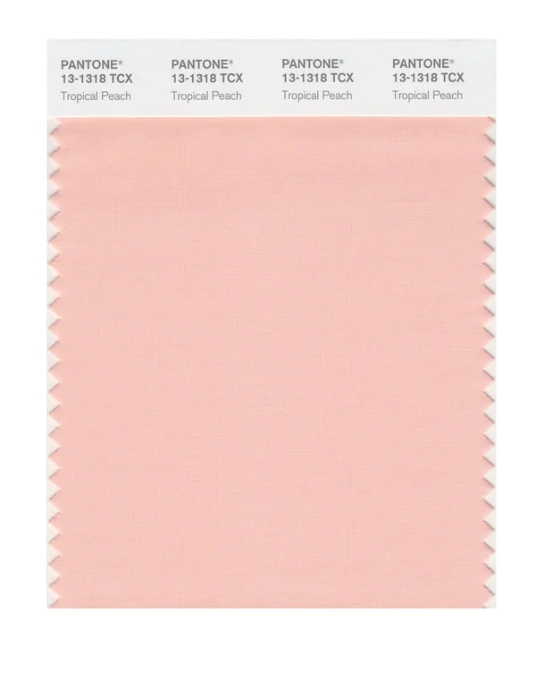 Tropical Peach is a light and airy color from the Pantone TCX collection, identified by the code 13-1318 TCX. This warm tone with its vibrant and bold character makes it an excellent choice for tropical themes, summer collections, and vibrant branding.