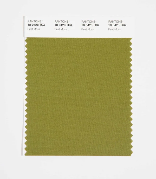 Peat Moss is a medium-toned color from the Pantone TCX collection, identified by the code 18-0428 TCX. This warm tone with its balanced character makes it an excellent choice for natural products, military themes, and earthy design.