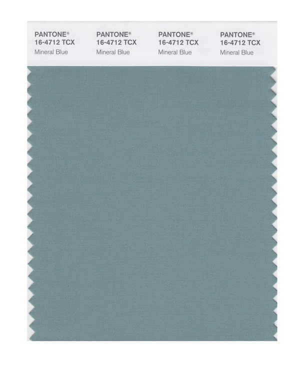 Mineral Blue is a medium-toned color from the Pantone TCX collection, identified by the code 16-4712 TCX. This cool tone with its balanced character makes it an excellent choice for industrial design, modern architecture, and tech products.