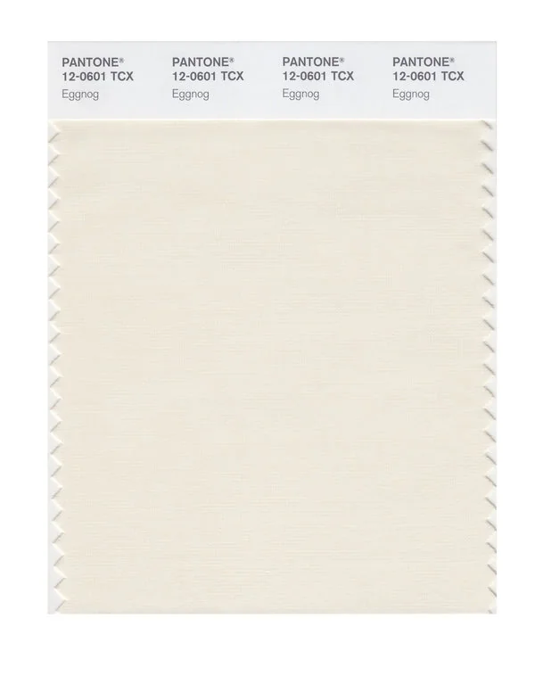 Eggnog is a light and airy color from the Pantone TCX collection, identified by the code 12-0601 TCX. This warm tone with its soft and pastel character makes it an excellent choice for soft warmth, wellness products, and gentle branding.