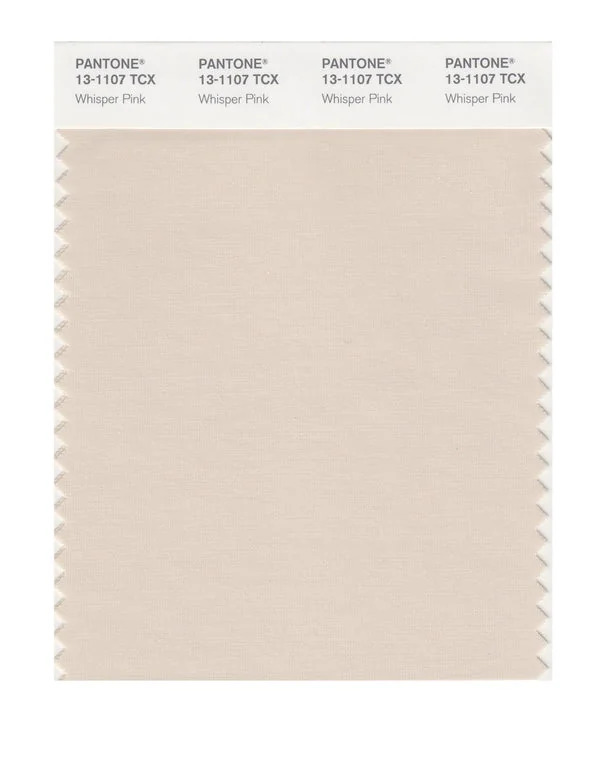 Whisper Pink is a light and airy color from the Pantone TCX collection, identified by the code 13-1107 TCX. This warm tone with its balanced character makes it an excellent choice for soft femininity, wellness branding, and gentle aesthetics.