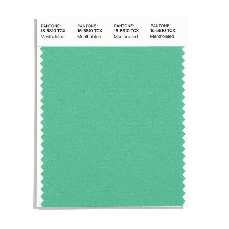 Mentholated is a medium-toned color from the Pantone TCX collection, identified by the code 15-5810 TCX. This cool tone with its balanced character makes it an excellent choice for wellness branding, spa environments, and serene design.
