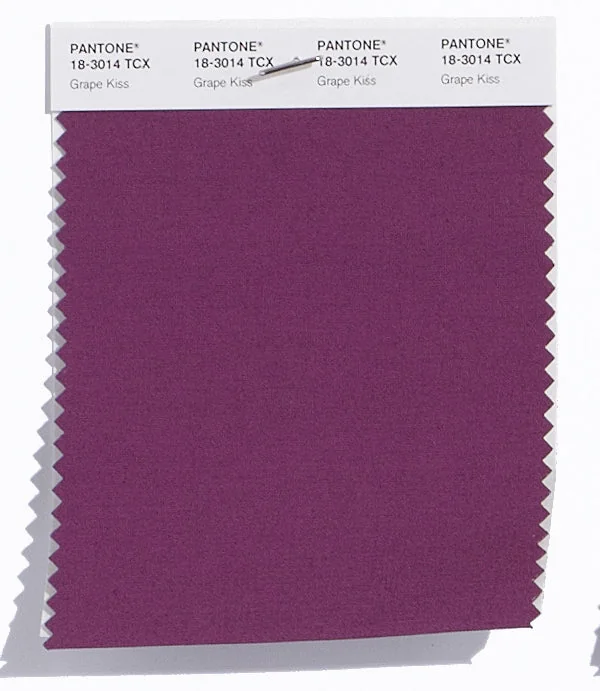 Grape Kiss is a medium-toned color from the Pantone TCX collection, identified by the code 18-3014 TCX. This warm tone with its balanced character makes it an excellent choice for bold fashion, energetic branding, and statement design.