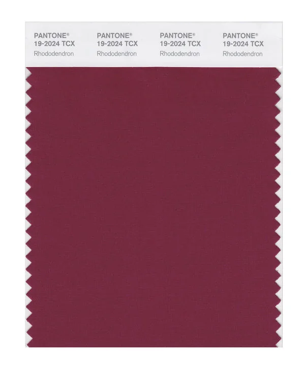 Rhododendron is a medium-toned red from the Pantone TCX collection, identified by the code 19-2024 TCX. This warm tone with its balanced character makes it an excellent choice for bold branding, passionate designs, and statement pieces.