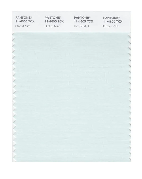 Hint Of Mint is a light and airy color from the Pantone TCX collection, identified by the code 11-4805 TCX. This cool tone with its soft and pastel character makes it an excellent choice for elegant neutrals, luxury textiles, and sophisticated design.