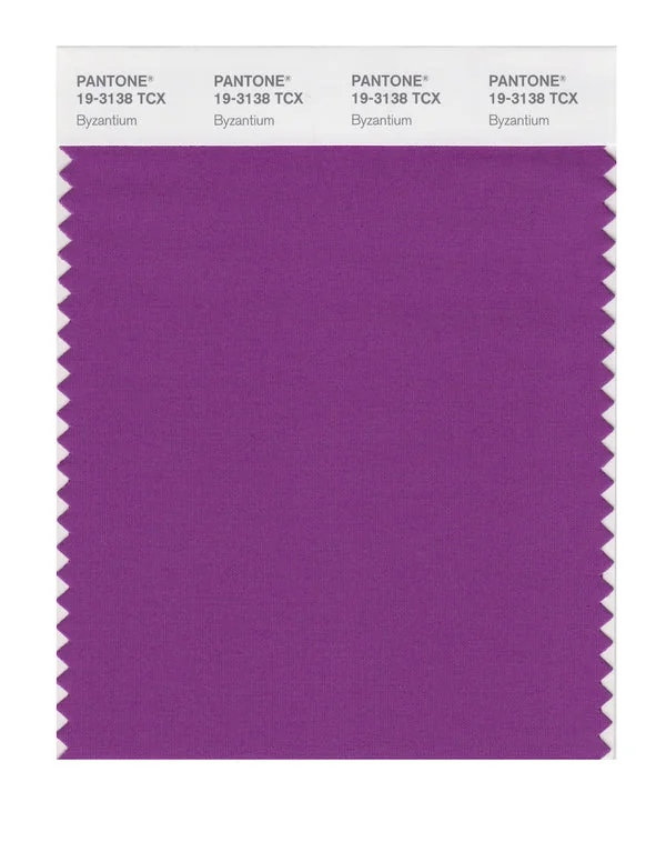 Byzantium is a medium-toned color from the Pantone TCX collection, identified by the code 19-3138 TCX. This warm tone with its balanced character makes it an excellent choice for bold fashion, energetic branding, and statement design.