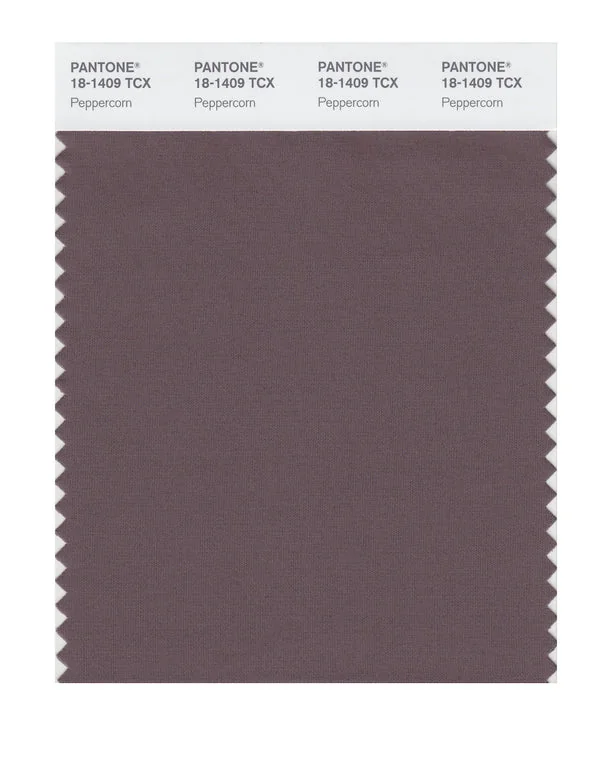Peppercorn is a medium-toned color from the Pantone TCX collection, identified by the code 18-1409 TCX. This warm tone with its balanced character makes it an excellent choice for luxury fashion, dramatic interiors, and premium branding.