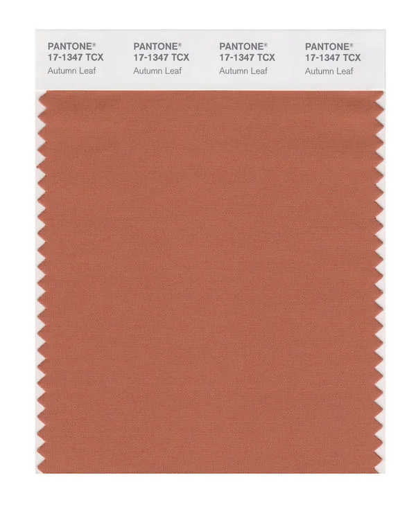 Autumn Leaf is a medium-toned orange from the Pantone TCX collection, identified by the code 17-1347 TCX. This warm tone with its balanced character makes it an excellent choice for energetic branding, autumn collections, and creative spaces.