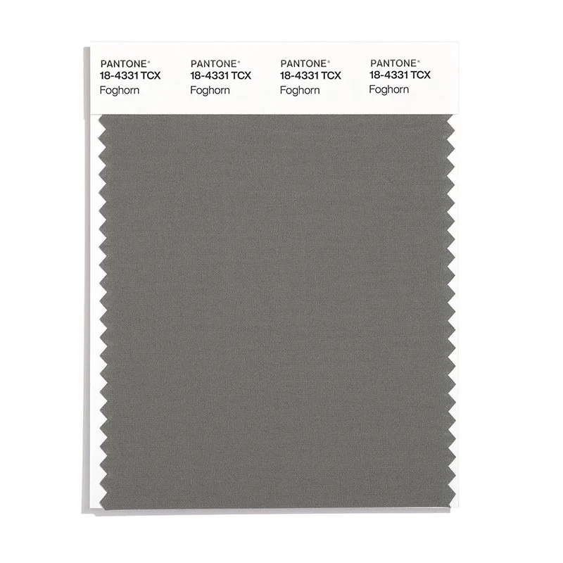 Foghorn is a medium-toned color from the Pantone TCX collection, identified by the code 18-4331 TCX. This warm tone with its balanced character makes it an excellent choice for sophisticated neutrals, urban design, and modern aesthetics.