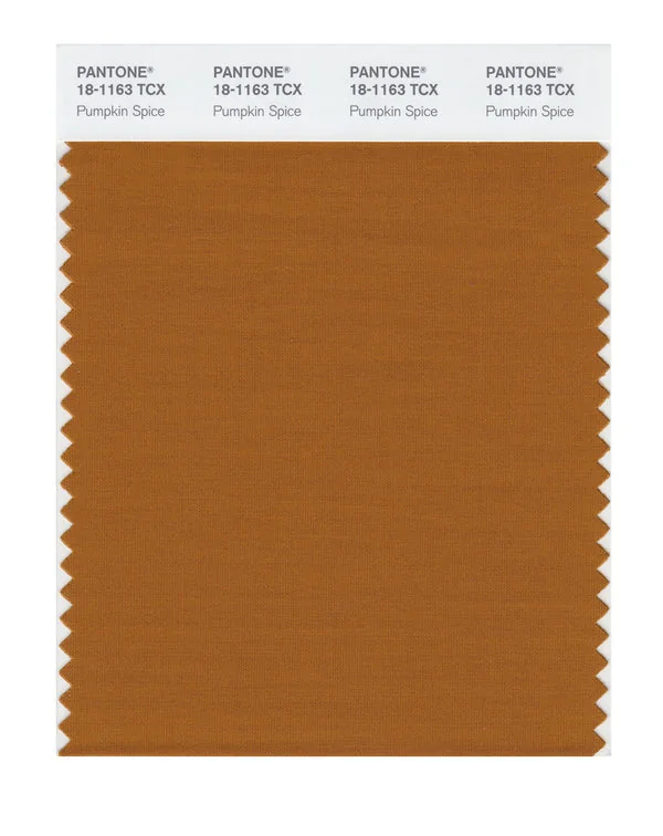 Pumpkin Spice is a medium-toned brown from the Pantone TCX collection, identified by the code 18-1163 TCX. This warm tone with its vibrant and bold character makes it an excellent choice for natural products, rustic design, and earthy branding.