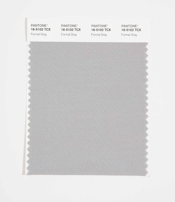 Formal Gray is a medium-toned color from the Pantone TCX collection, identified by the code 16-5102 TCX. This cool tone with its balanced character makes it an excellent choice for sophisticated neutrals, urban design, and modern aesthetics.