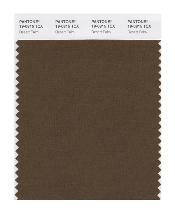 Desert Palm is a deep and rich brown from the Pantone TCX collection, identified by the code 19-0815 TCX. This warm tone with its balanced character makes it an excellent choice for natural products, rustic design, and earthy branding.