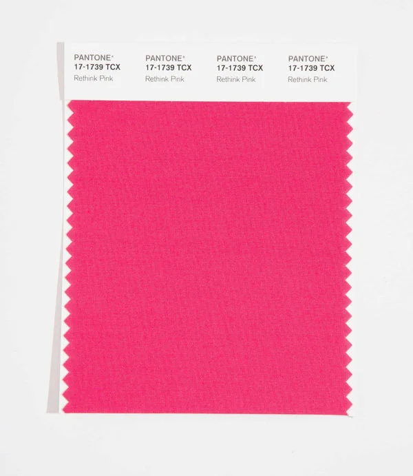 Rethink Pink is a medium-toned red from the Pantone TCX collection, identified by the code 17-1739 TCX. This warm tone with its balanced character makes it an excellent choice for bold branding, passionate designs, and statement pieces.