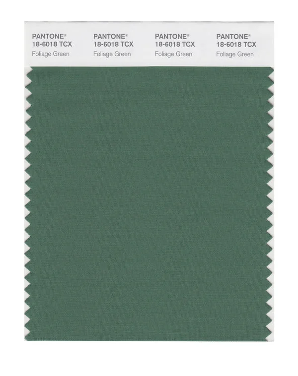 Foliage Green is a medium-toned color from the Pantone TCX collection, identified by the code 18-6018 TCX. This cool tone with its balanced character makes it an excellent choice for wellness branding, spa environments, and serene design.