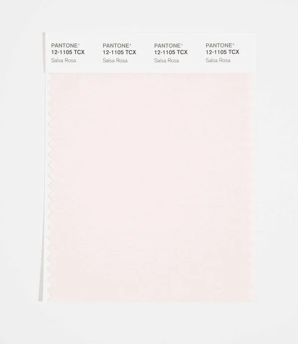 Salsa Rosa is a light and airy color from the Pantone TCX collection, identified by the code 12-1105 TCX. This warm tone with its balanced character makes it an excellent choice for soft warmth, wellness products, and gentle branding.
