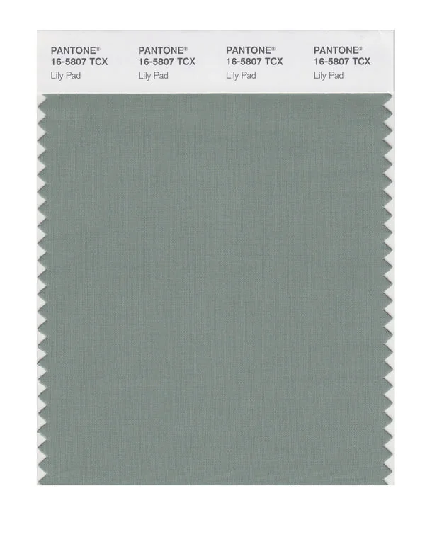 Lily Pad is a medium-toned color from the Pantone TCX collection, identified by the code 16-5807 TCX. This cool tone with its balanced character makes it an excellent choice for wellness branding, spa environments, and serene design.