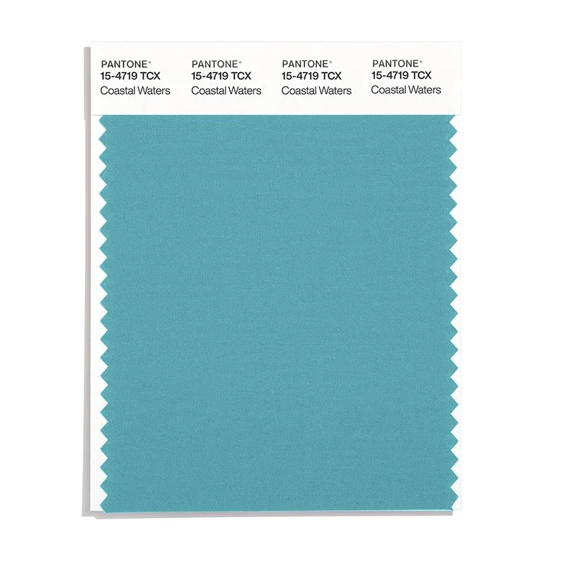 Coastal Waters is a medium-toned color from the Pantone TCX collection, identified by the code 15-4719 TCX. This cool tone with its balanced character makes it an excellent choice for industrial design, modern architecture, and tech products.