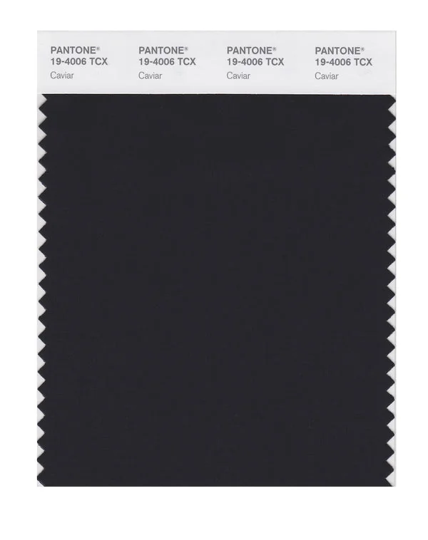 Caviar is a deep and rich black from the Pantone TCX collection, identified by the code 19-4006 TCX. This cool tone with its balanced character makes it an excellent choice for luxury branding, formal wear, and sophisticated design.