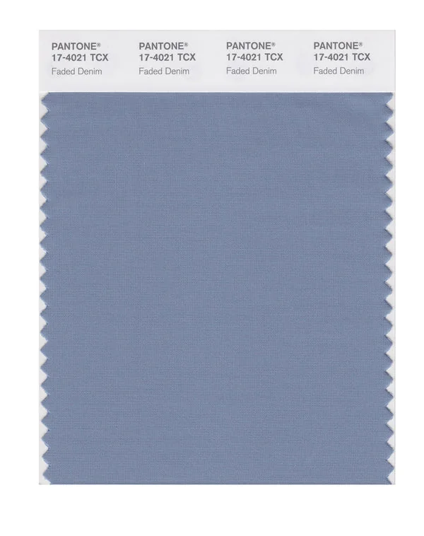 Faded Denim is a medium-toned color from the Pantone TCX collection, identified by the code 17-4021 TCX. This cool tone with its balanced character makes it an excellent choice for premium branding, luxury services, and sophisticated design.