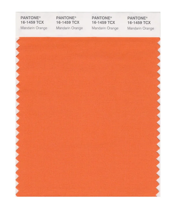 Mandarin Orange is a medium-toned orange from the Pantone TCX collection, identified by the code 16-1459 TCX. This warm tone with its vibrant and bold character makes it an excellent choice for energetic branding, autumn collections, and creative spaces.