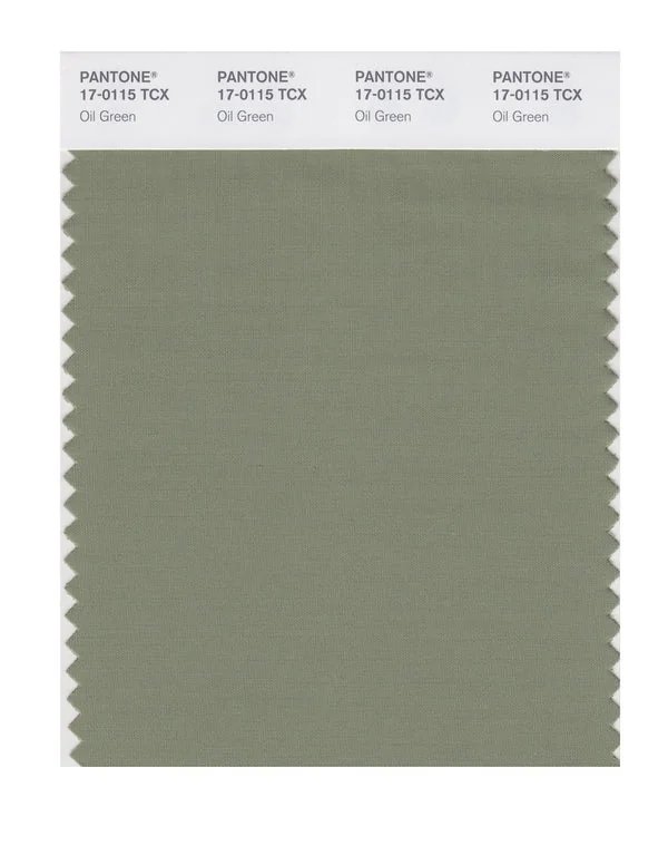Oil Green is a medium-toned color from the Pantone TCX collection, identified by the code 17-0115 TCX. This cool tone with its balanced character makes it an excellent choice for natural products, military themes, and earthy design.