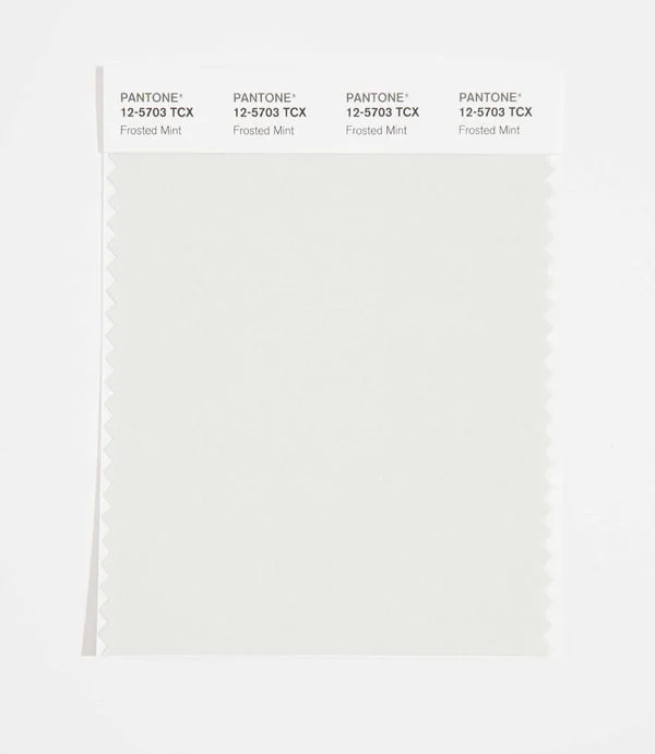 Frosted Mint is a light and airy green from the Pantone TCX collection, identified by the code 12-5703 TCX. This cool tone with its soft and pastel character makes it an excellent choice for sustainability, nature brands, and eco-friendly design.