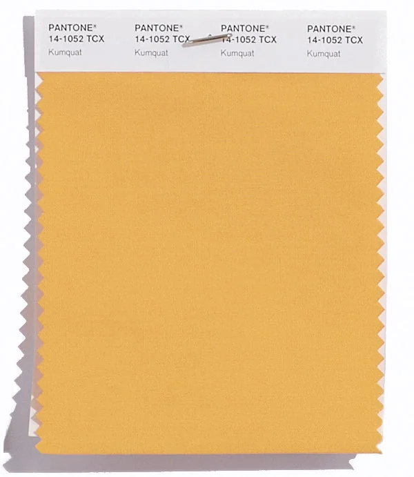 Kumquat is a medium-toned color from the Pantone TCX collection, identified by the code 14-1052 TCX. This warm tone with its vibrant and bold character makes it an excellent choice for soft femininity, wellness branding, and gentle aesthetics.